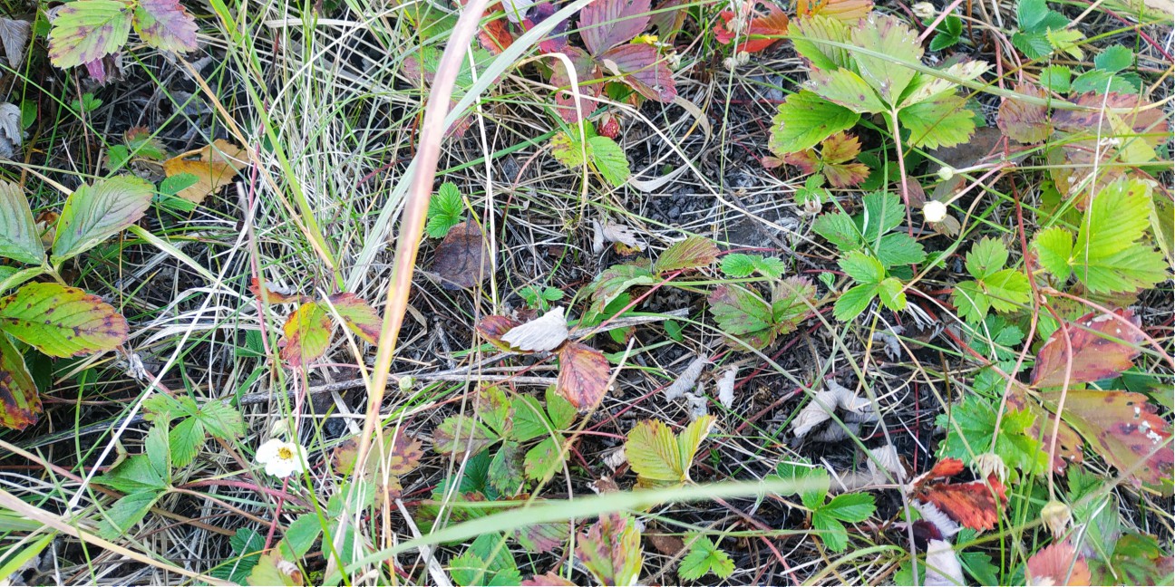 земляника цветет, и есть 1 ягодка