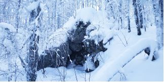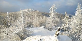 поднялся на соседние скалы