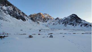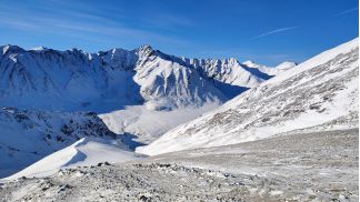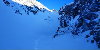 на спуск 2 пологих кулуара, в 2010 ходил левый, там все просто