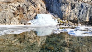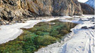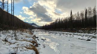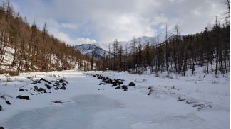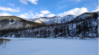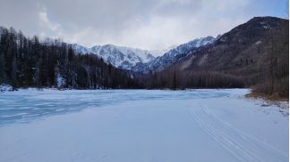 вышли на р. Китой, есть лыжня