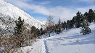 идем на пер. Шумак по заметенной лыжне