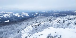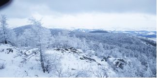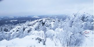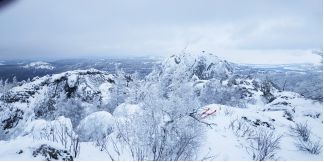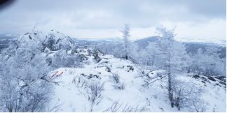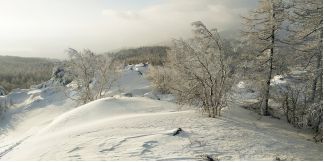 поднялся на соседние скалы