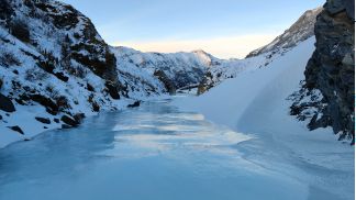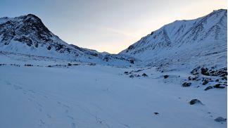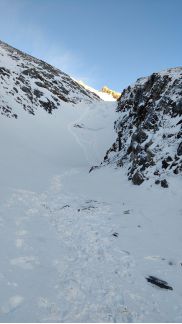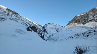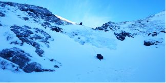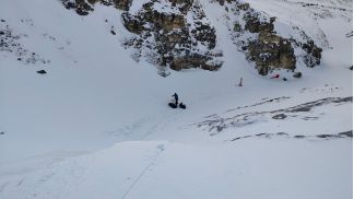 на спуск 2 пологих кулуара, в 2010 ходил левый, там все просто