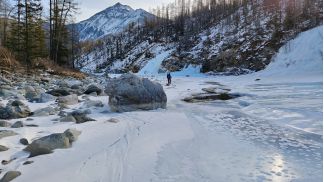 вышли на р. Китой, есть лыжня