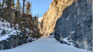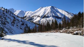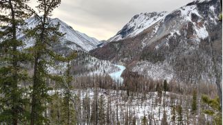 поднимаемся по р. Яман-Гол, есть спусковая лыжня