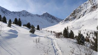 идем на пер. Шумак по заметенной лыжне